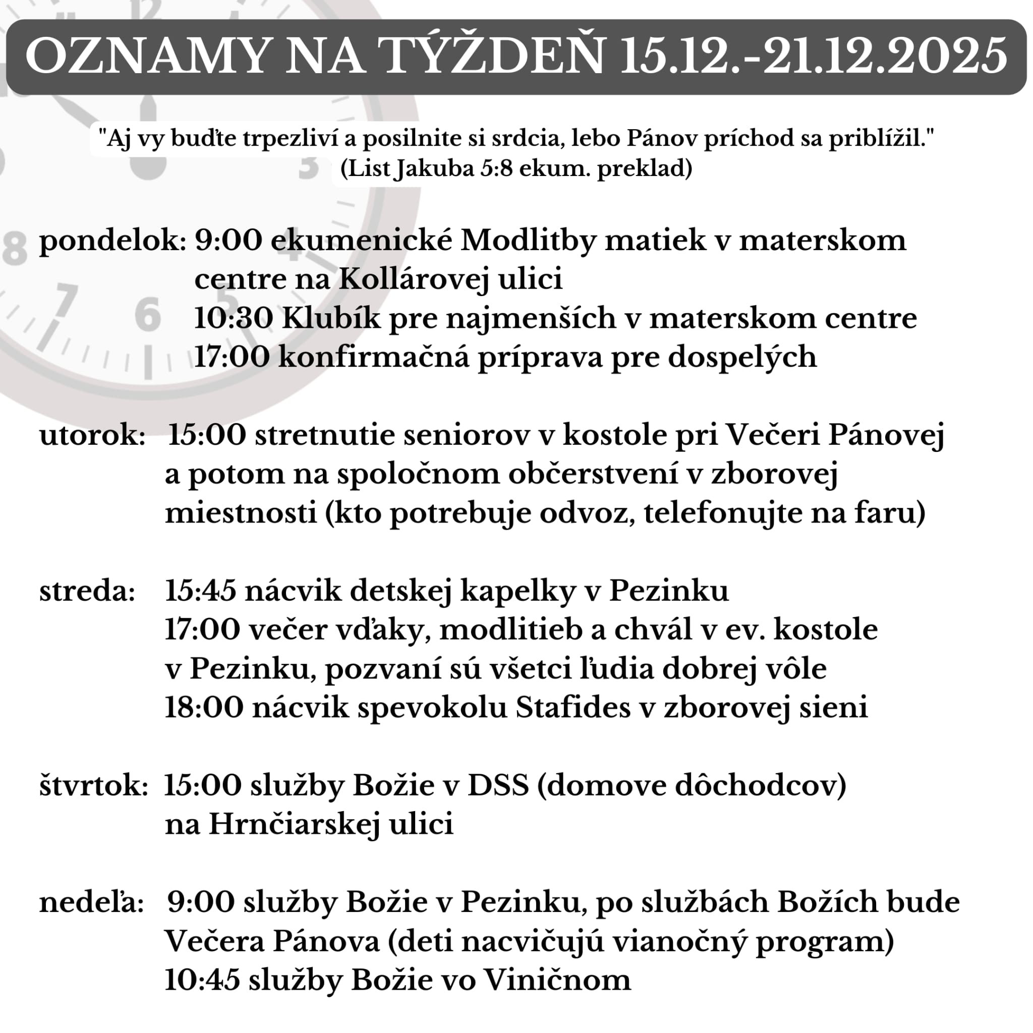 Oznamy na týždeň 15.12.2025-21.12.2025